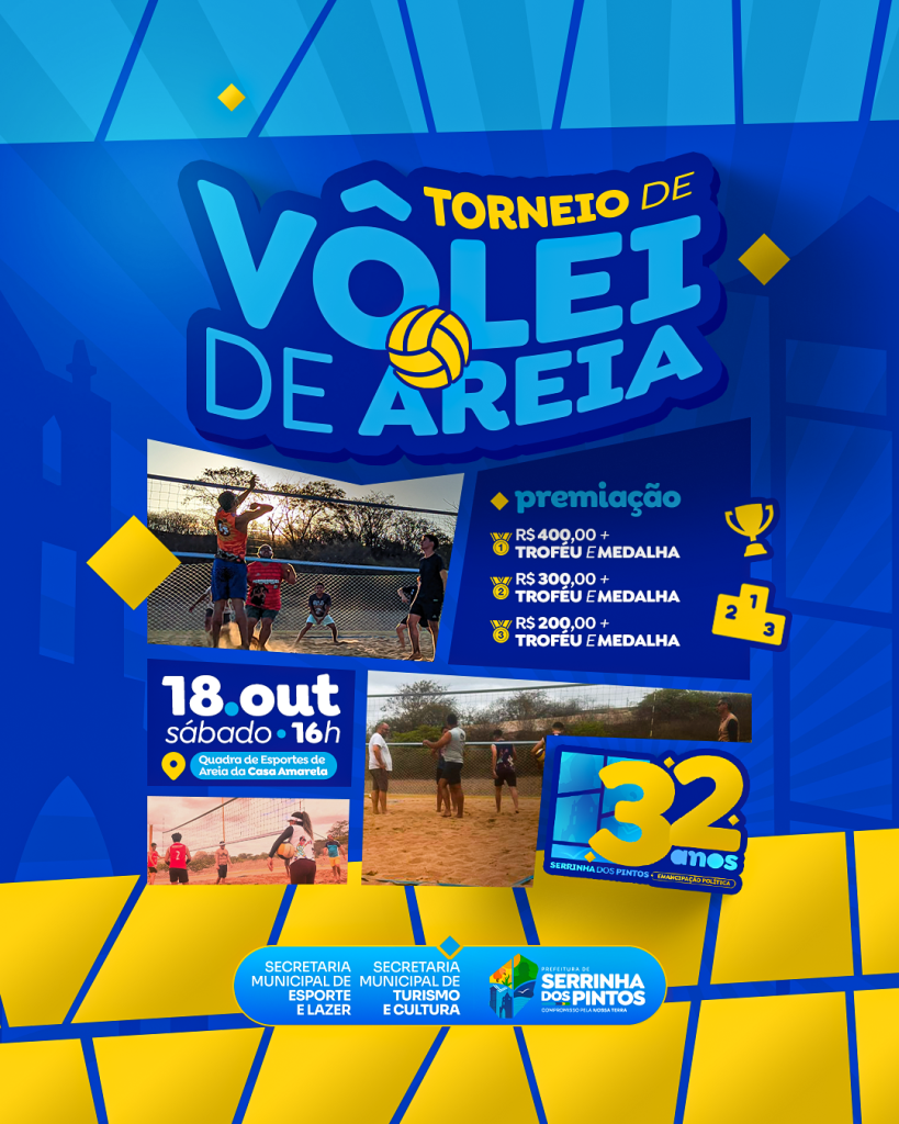 O torneio será realizada no dia 18 de outubro, sábado, às 16h, na Quadra de Esportes de Areia da Casa Amarela, reunindo atletas e apaixonados pelo vôlei em um evento cheio de energia e espírito esportivo.