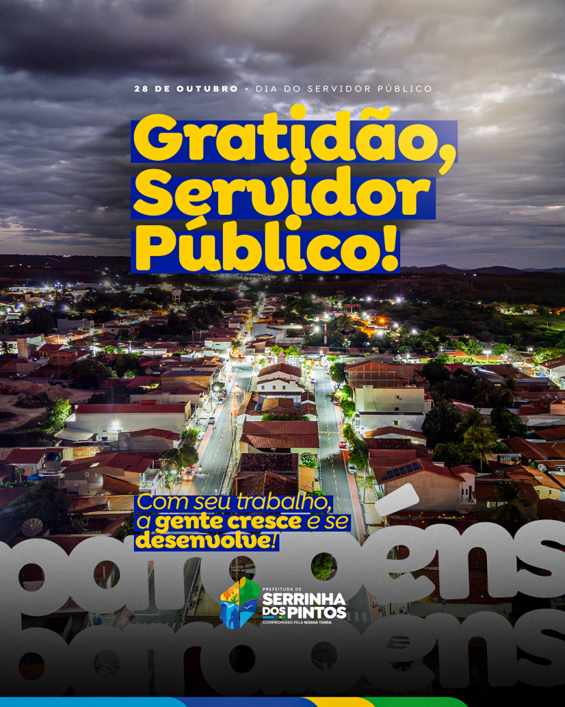 Hoje é dia de reconhecer quem faz a diferença todos os dias! Com dedicação, compromisso e amor pelo que faz, os servidores públicos constroem uma Serrinha dos Pintos que cresce e se desenvolve a cada dia.