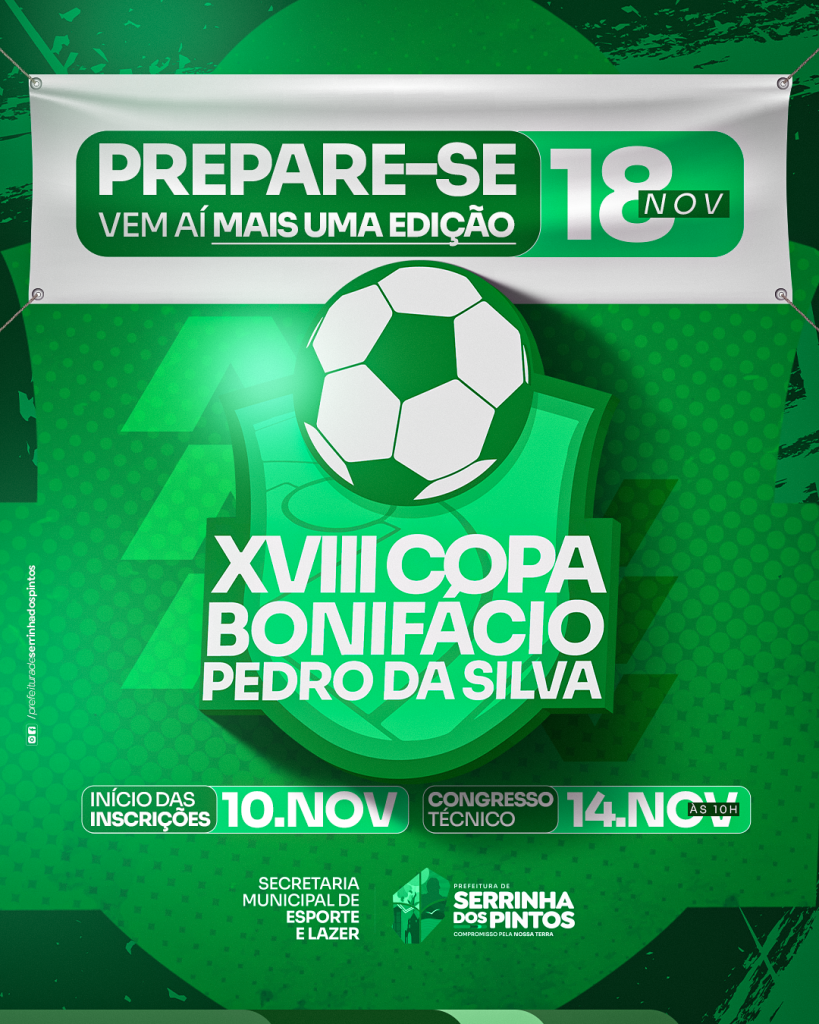 Vem aí a XVIII Copa Bonifácio Pedro da Silva, reunindo talento, dedicação e paixão pelo futsal em mais uma edição marcada pela tradição e pelo espírito esportivo.