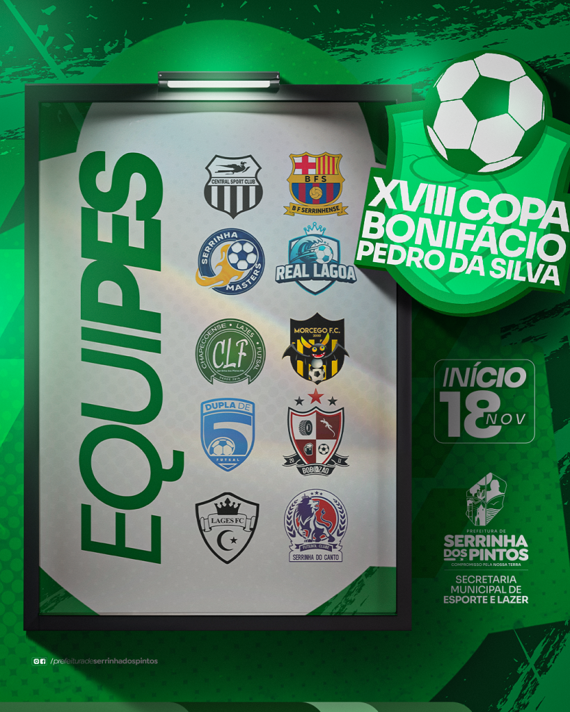A BOLA VAI ROLAR! Está chegando a XVIII Copa Bonifácio Pedro da Silva, reunindo equipes que fazem a paixão pelo esporte acontecer.