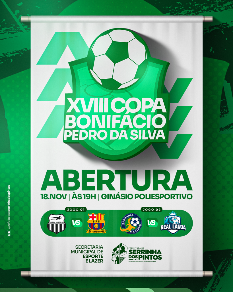 A bola vai rolar! A XVIII Copa Bonifácio Pedro da Silva terá sua abertura amanhã, 18 de novembro, às 19h, no Ginásio Poliesportivo Genilson Ferreira de Lemos.