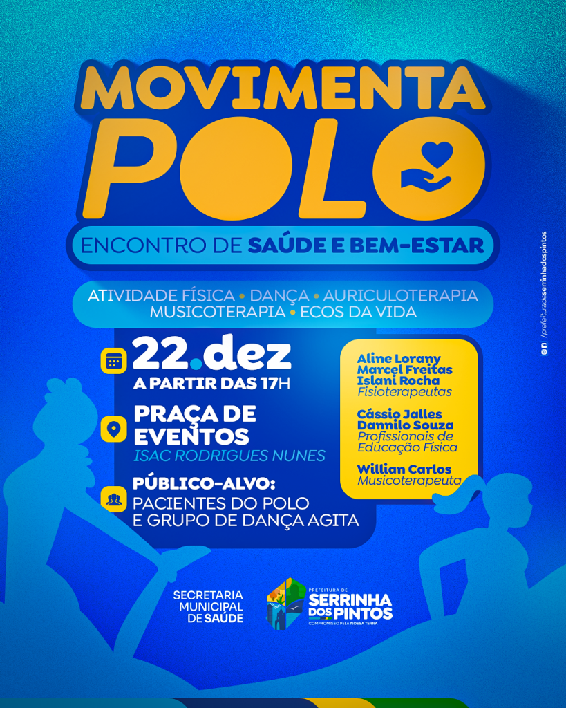 O Movimenta Polo está chegando para proporcionar saúde, bem-estar e muita energia positiva! No dia 22 de dezembro, a partir das 17h, a Praça de Eventos Isac Rodrigues Nunes será palco de um grande encontro com atividades que promovem cuidado, movimento e qualidade de vida.