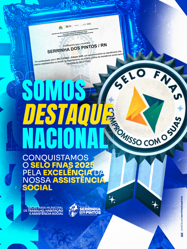 Um reconhecimento que enche nosso município de orgulho! Serrinha dos Pintos conquista o Selo FNAS 2025, um importante certificação, de destaque nacional, que comprova o compromisso, a responsabilidade e a qualidade dos serviços prestados à nossa população.