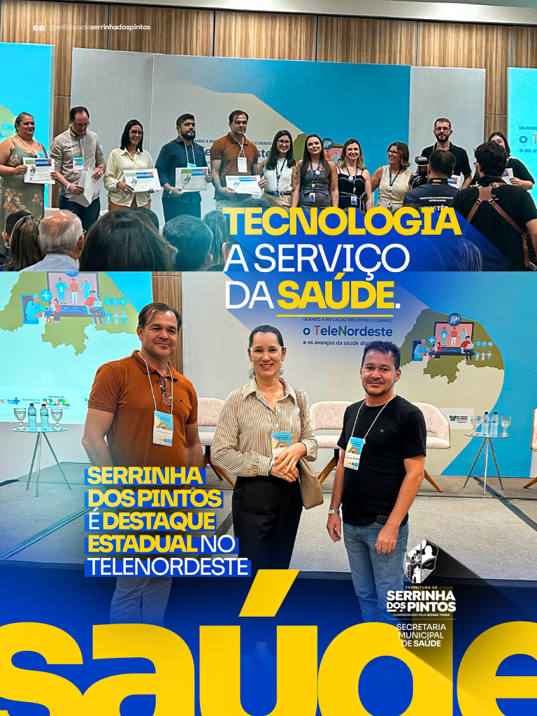A Prefeitura de Serrinha dos Pintos, por meio da Secretaria Municipal de Saúde, esteve presente, no dia 19 de março, quinta-feira, em evento do Projeto TeleNordeste, cuja temática foi: “Quando a inovação encontra o cuidado: o TeleNordeste e os avanços da saúde digital no Rio Grande do Norte e no país”.