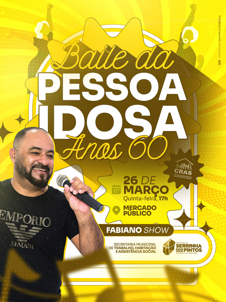 Na próxima quinta-feira, 26 de março, às 17h, no Mercado Público, acontecerá o Baile da Pessoa Idosa – Anos 60, trazendo muita música, alegria e nostalgia em um ambiente preparado com carinho para aproveitar cada instante.